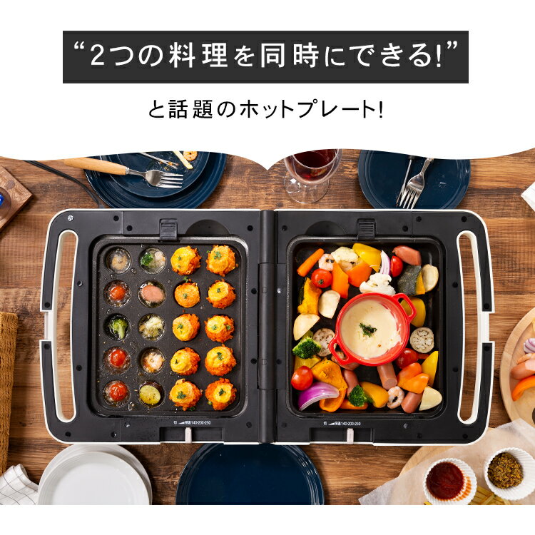 【1.2つの調理面で独立した温度調整を実現】独立した2つのプレートにより2種類以上の調理を同時に行うことができます♪