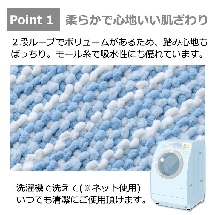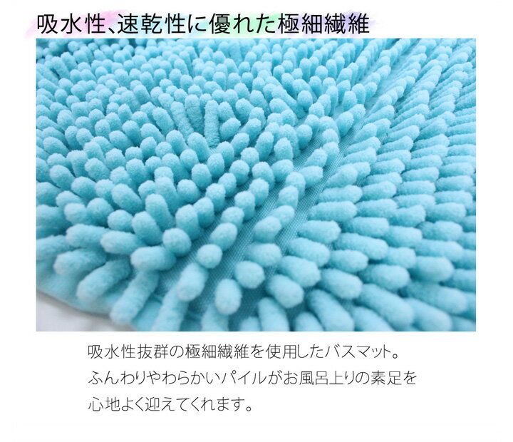その他 快適ふわふわボリューム バスマット/お風呂マット 【ブルー 約50×75cm】 洗える 吸水性 防滑加工 〔脱衣所 洗面所〕 ds-2319383