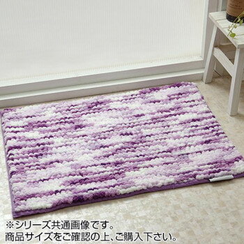 【代引き・同梱不可】洗えるバスマット ふわふわボリューム 約50×75cm パープル 3476839