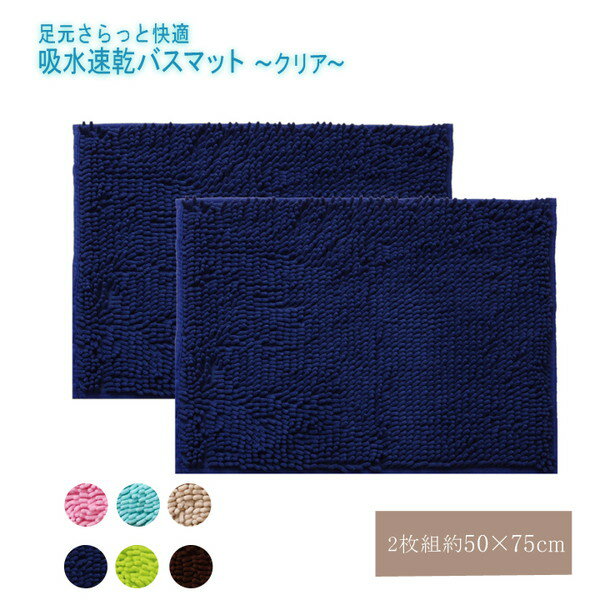 バスマット 洗える 吸水 速乾 無地 クリア ネイビー 2枚組 約50×75cm マット バスマット 機能性 50×75cm シンプル(代引不可)【送料無料】
