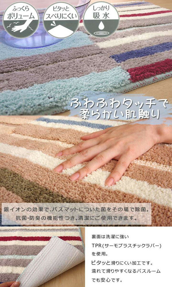 バスマット 抗菌防臭 吸水 部屋干しOK グリース 銀イオン ベージュ 約50×75cm(代引不可)【送料無料】